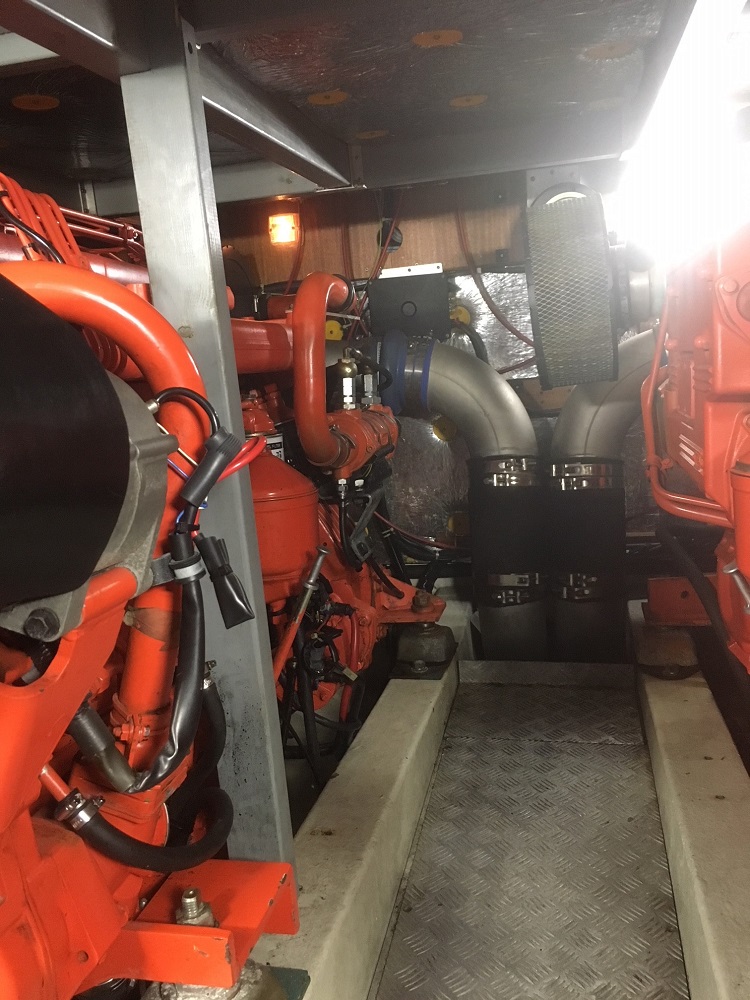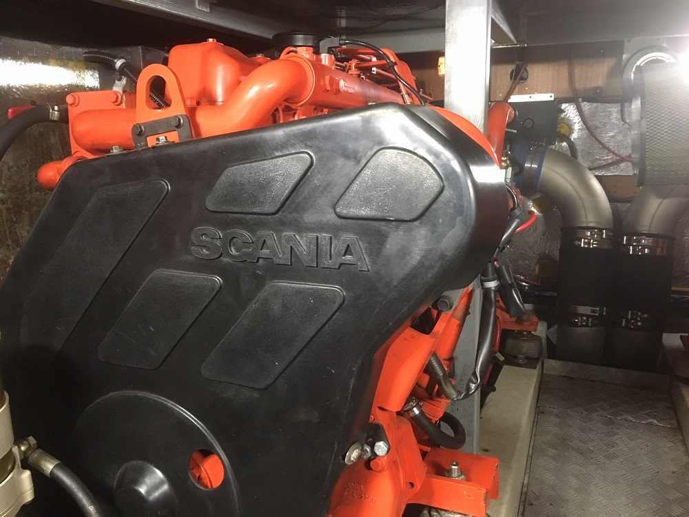 2 x Scania DSI9 diesel (483 hk/st,), gångtid ca 675 timmar