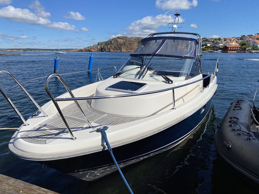 Aquador 23 WA årsmodell 2008, uttagen 2009. Båten är i mycket fint skick. Förvarad i varmhall och servad på auktoriserad verkstad varje år. Volvo Penta D3 190 hästkrafter med ca 300 timmar. Endast en ägare, mycket utrustning. Längd: 7,15 m Bredd: 2,50 m Vikt: 2.100 kg Djupgående: 0,85 m Fart: 30 knop Utrustning bla: -Bogpropeller -Stereo -Garmin 525 GPS -Full teak -El-ankarspel akter (2019) -Powertrim (2019) -Kylskåp -Toalett -Sportstolar -Teakbord -Öppningsbara fönster i kabin -Kök Båten ligger vårutrustad i vattnet vid Fiskebäckskil. Finansiering kan ordnas via Swedbank Finans. Välkomna att kontakta oss för visning, Christian Johansson 0709-520252