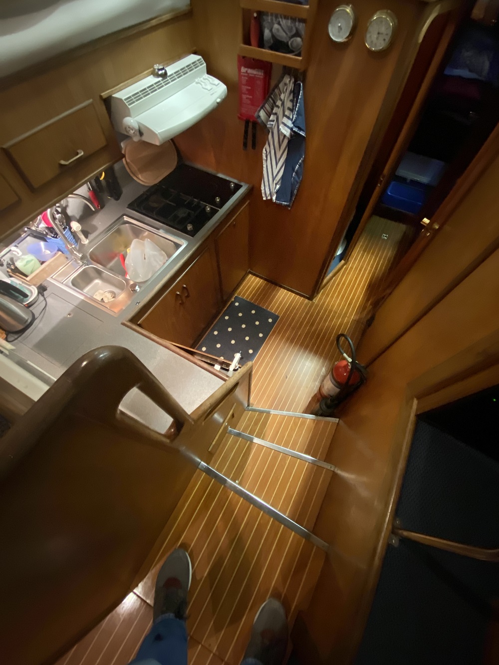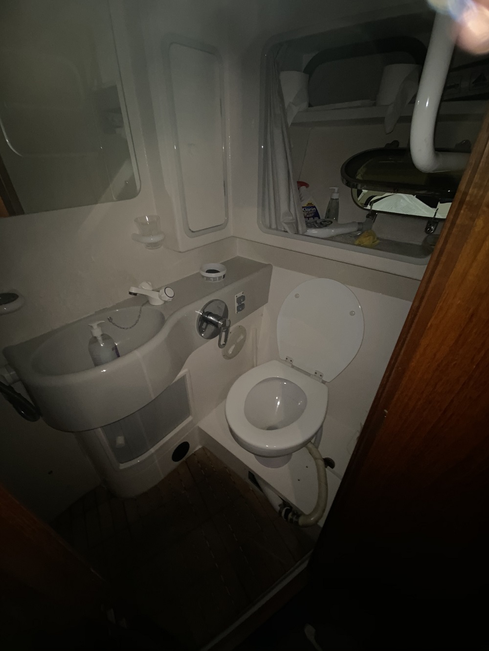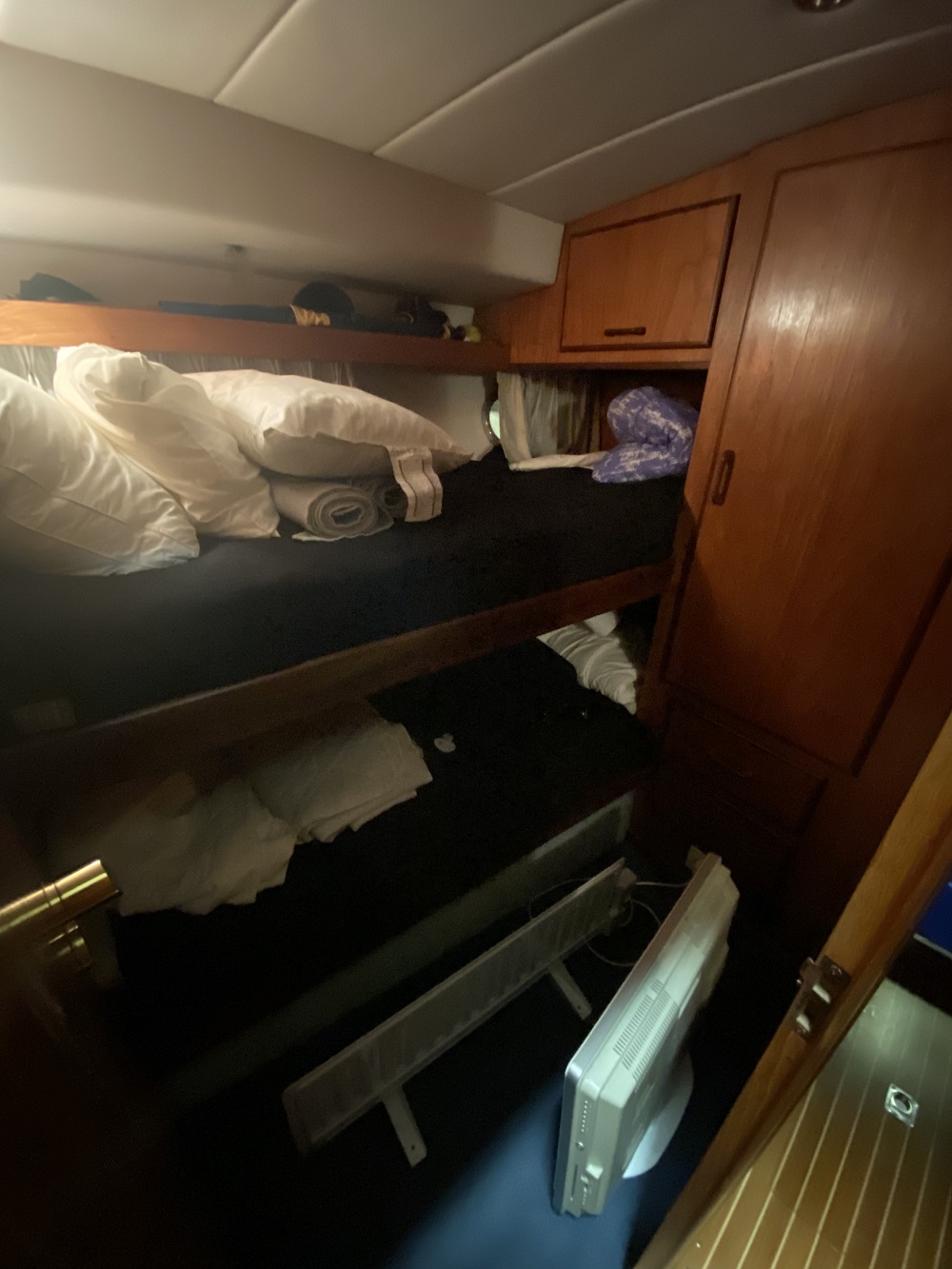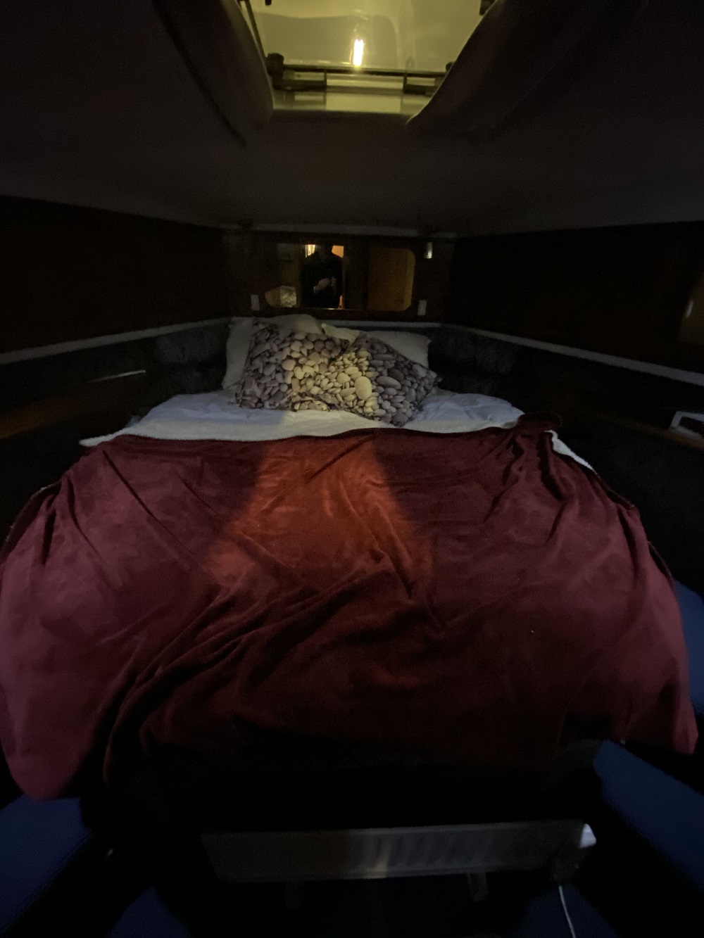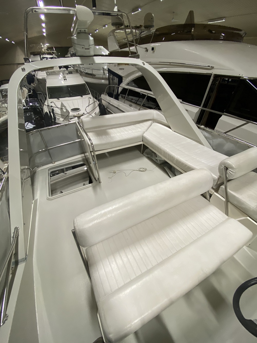 Båten ligger vinterförvarad i varmhall på Malmöns Marina