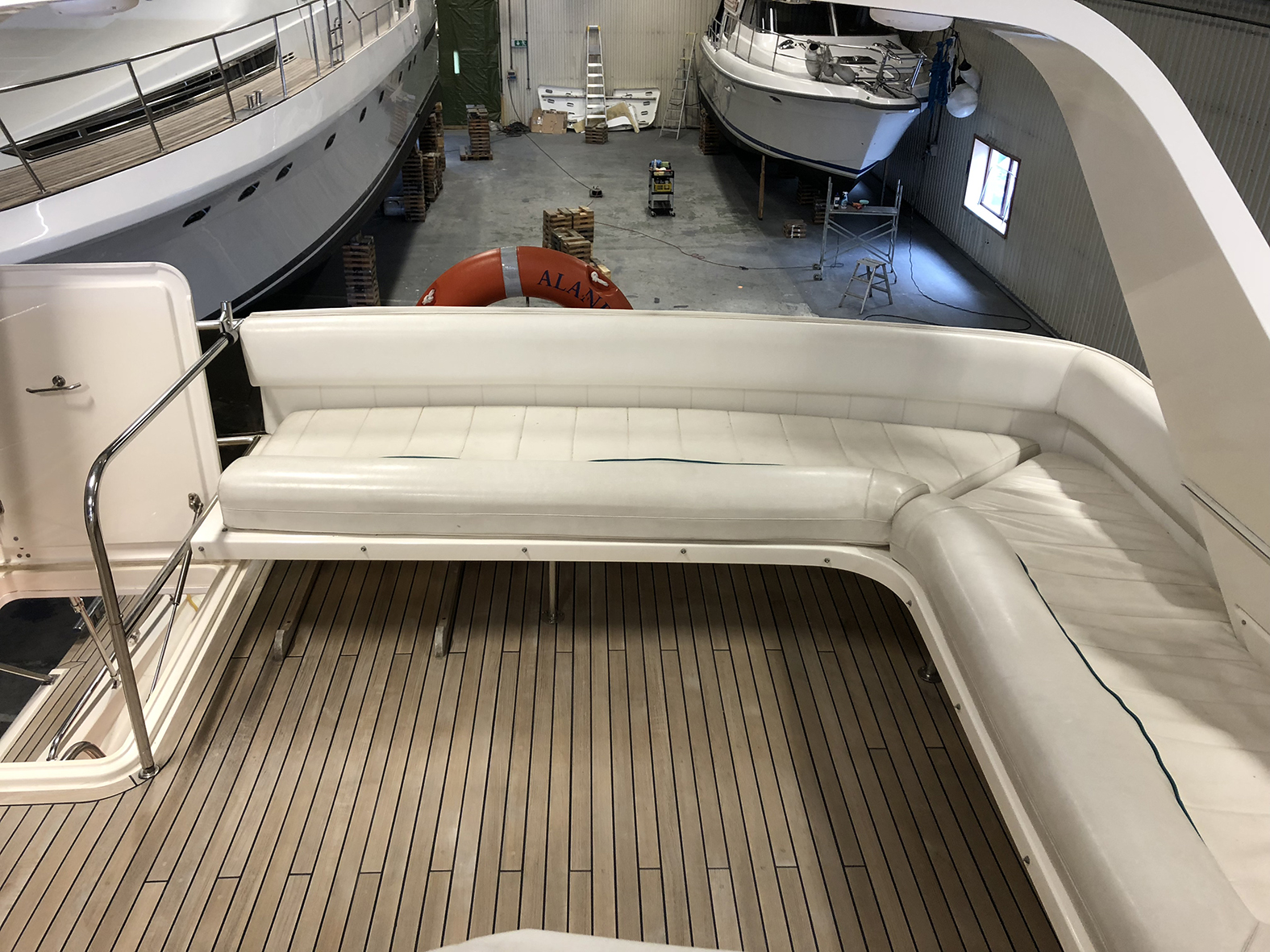 – Nytt äkta teakdäck över alla gångytor, flybridge, akterdäck samt badplattform.
