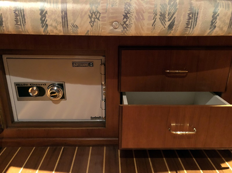 – Komplett specialritad inredning i vaxad Teak med genomgående trädurk (istället för heltäckningsmattor) . Allt avpassat efter de maskiner, elektronik o möbler som skulle monteras i originalen. Extra låddel med 6 lådor i pentryt o mycket plats i skåpen.
