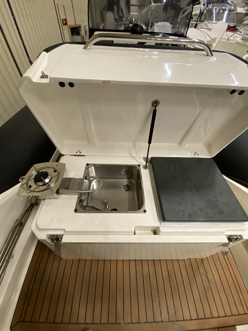 VHF radio, Kylskåp, Vask, Dusch akter, Gasolplatta samt Flexiteak