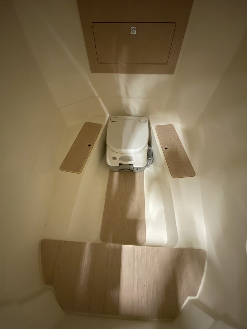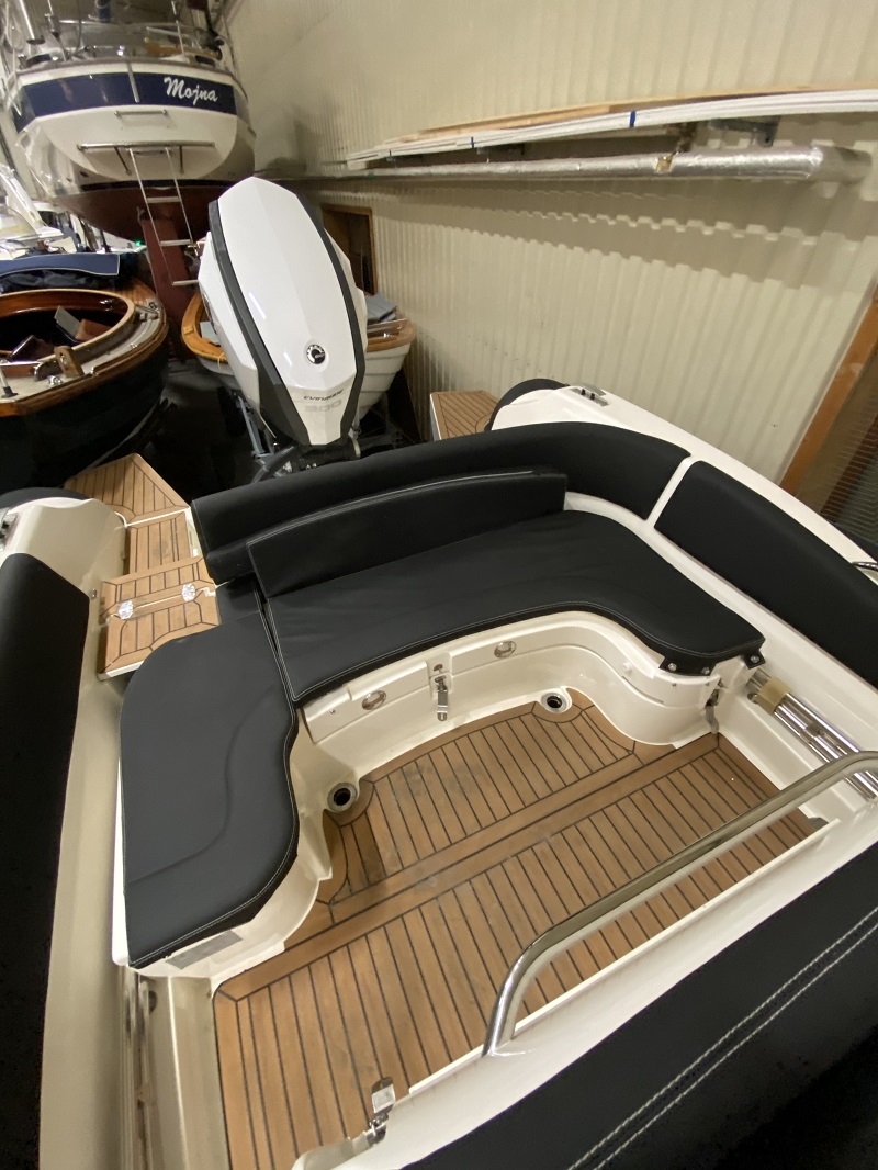 Standardutrustning: Biminitop, solbädd fram o bak, Porta Poti, lyftöglor, dusch, badbrygga, badstege, LED belysning