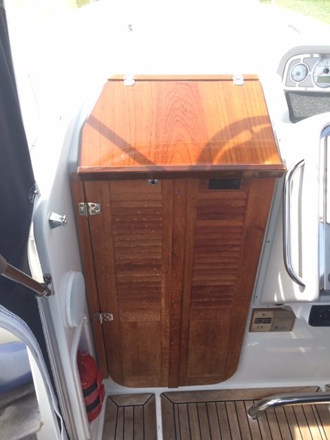 Teak i cockpit, badplattform, fördäck samt sittplats på rufftak