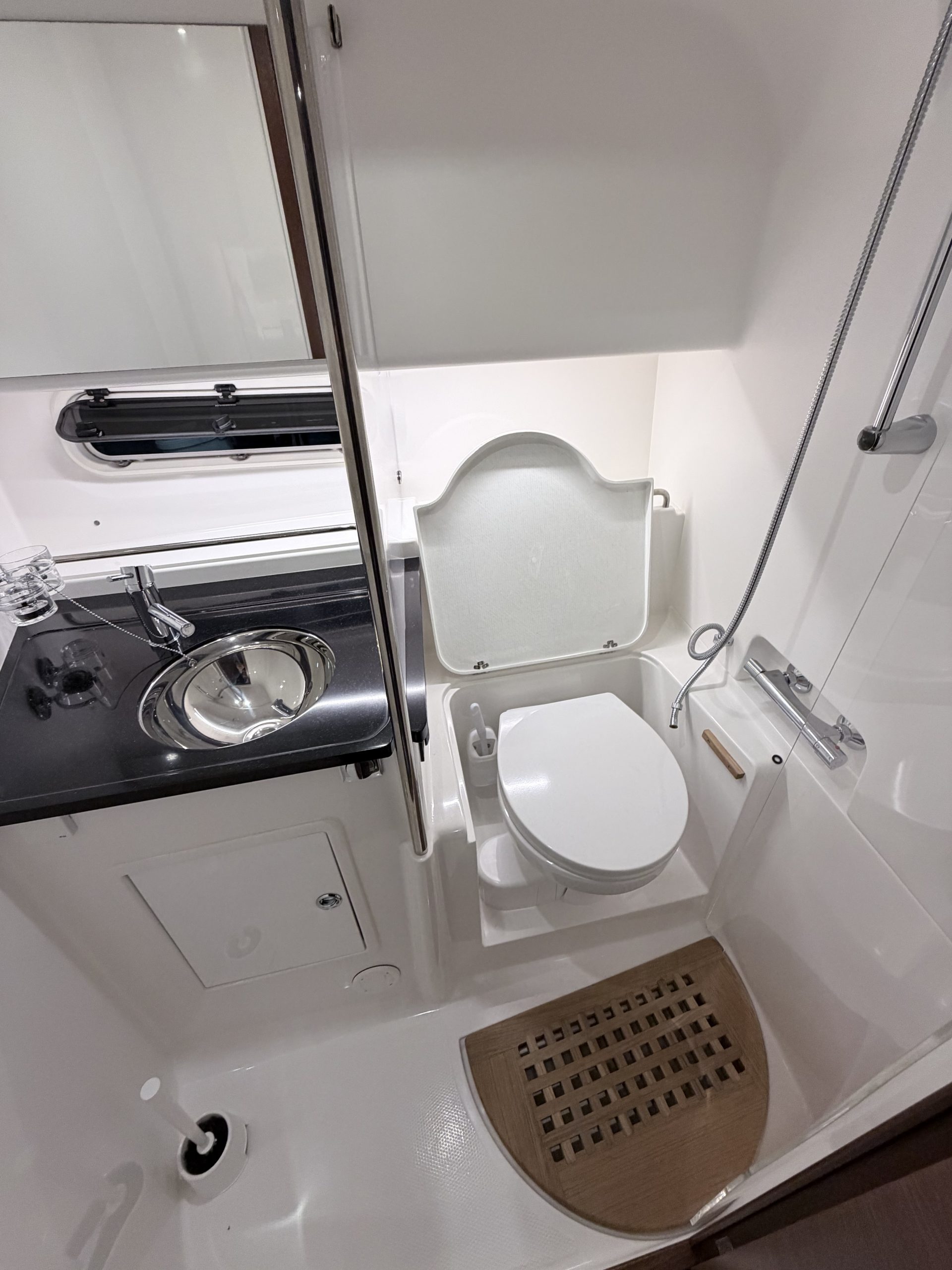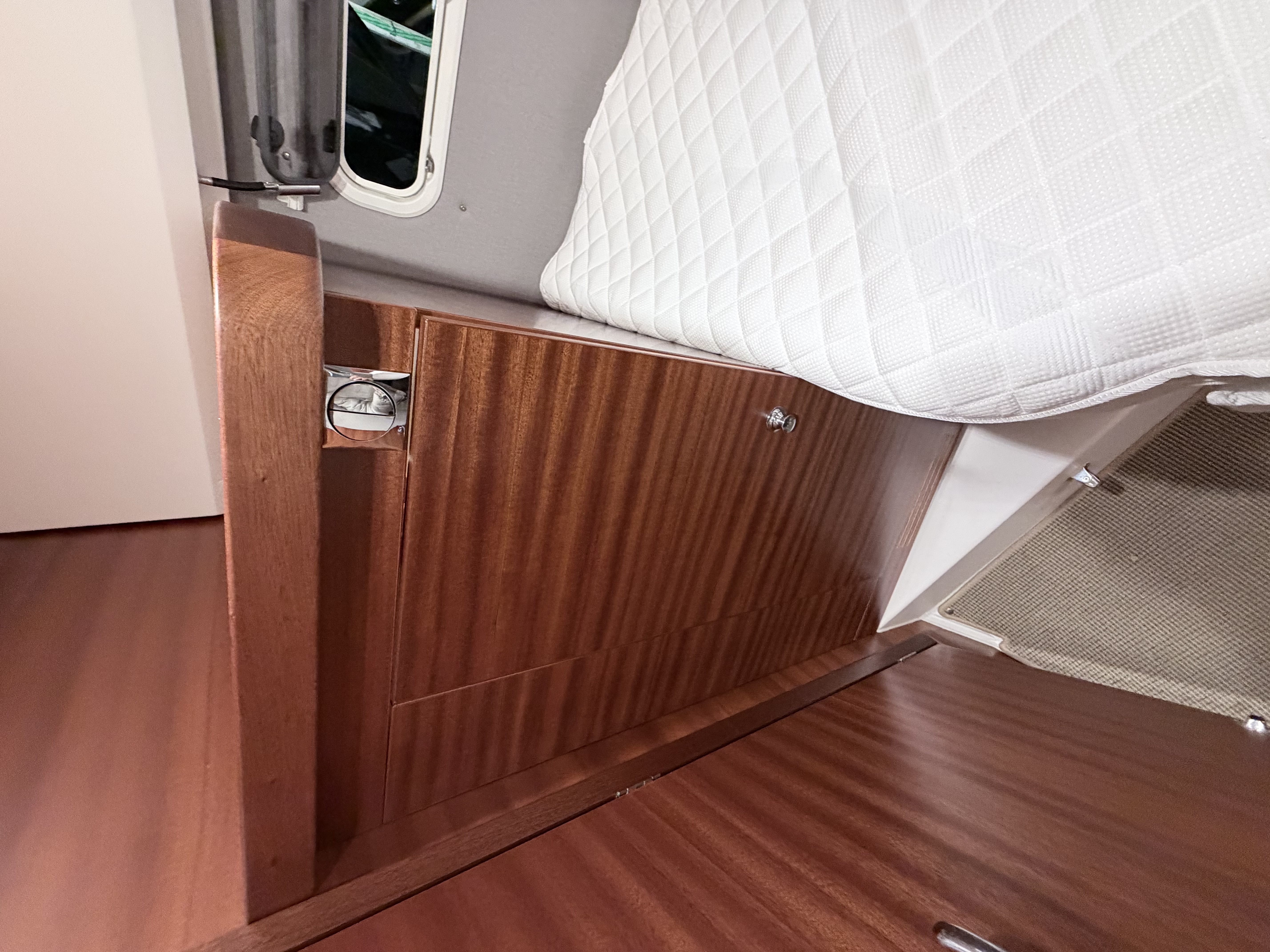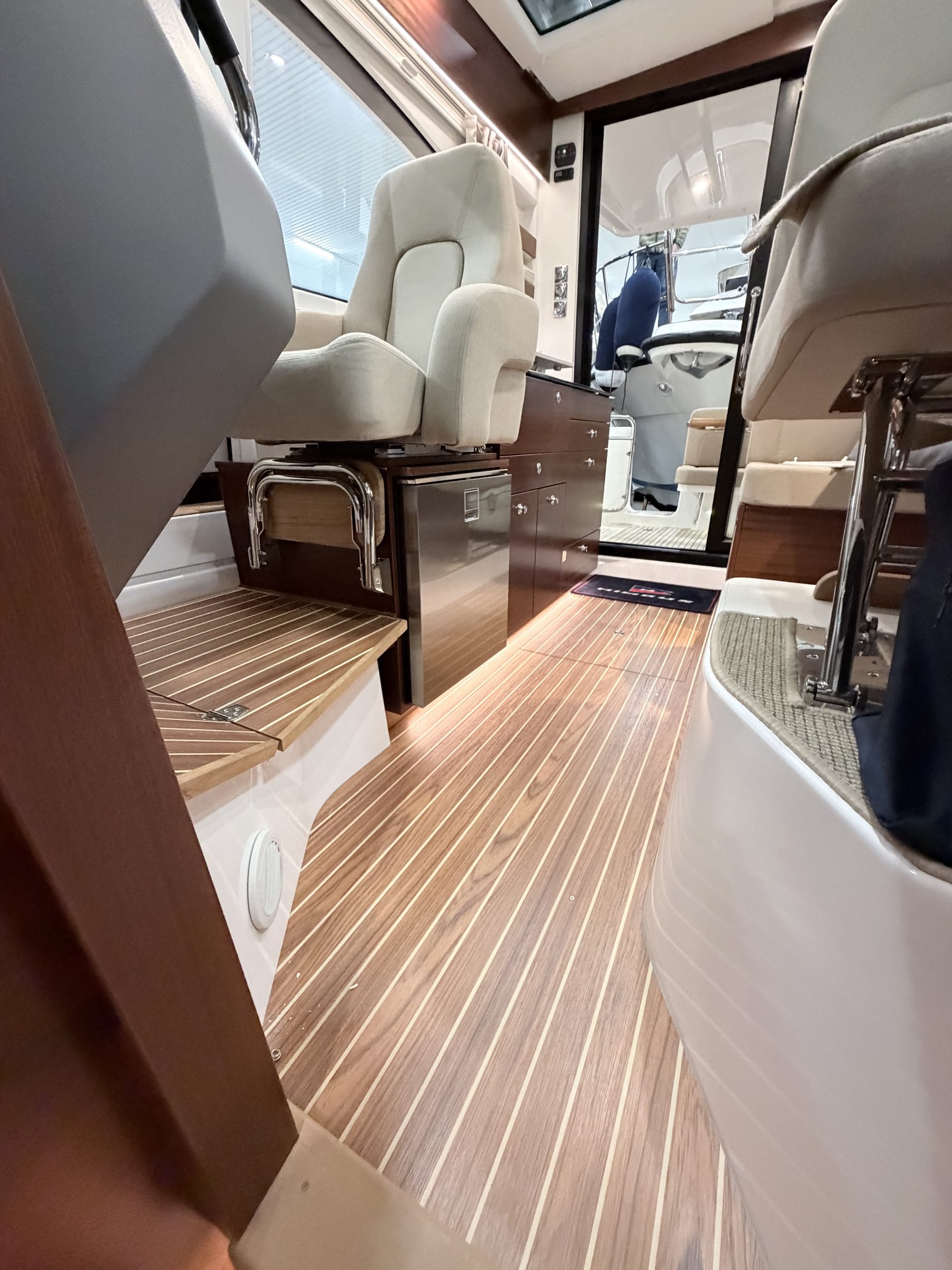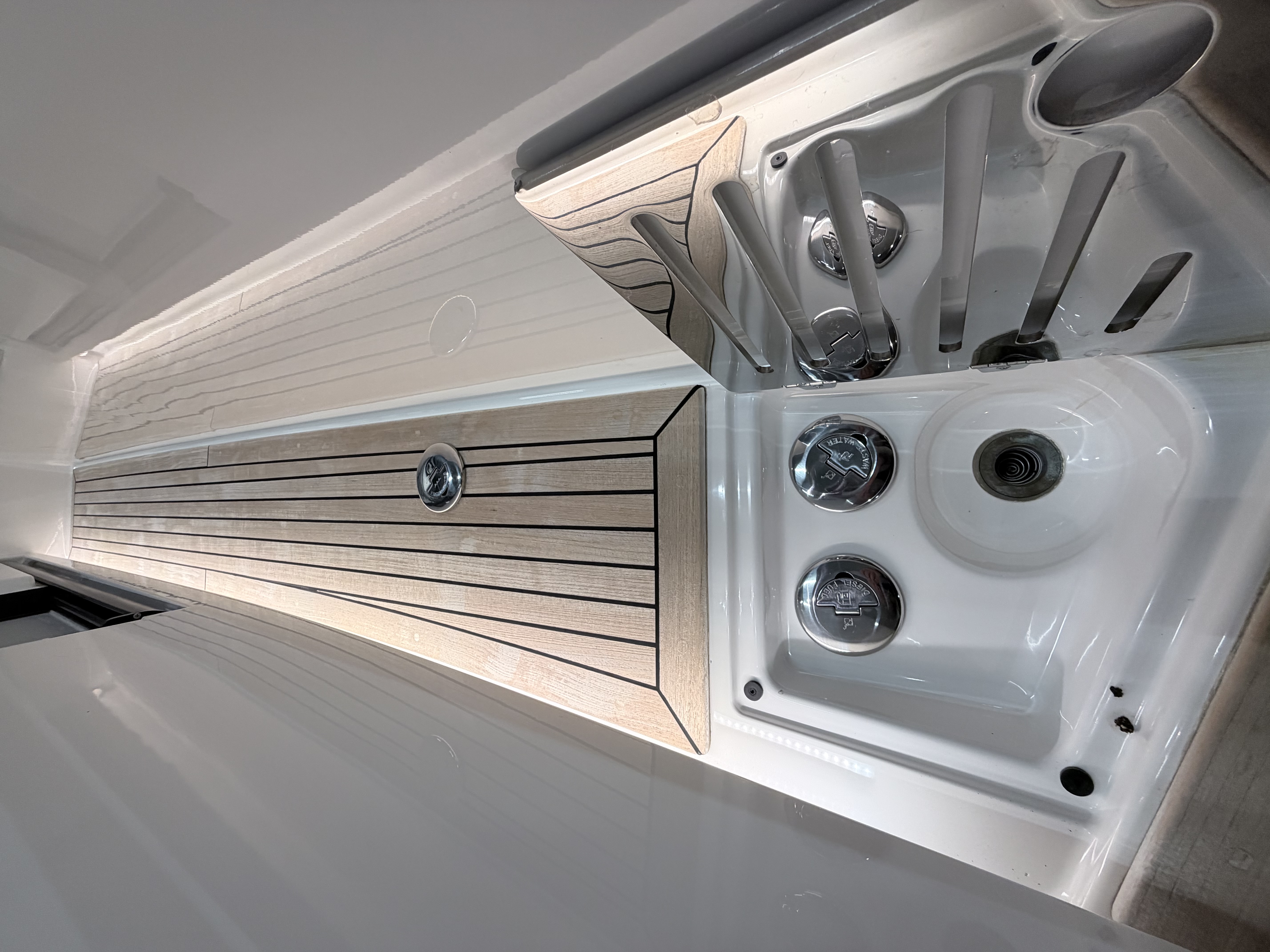 Teak badplattform, akterdäck, fördäck och styrbords sida