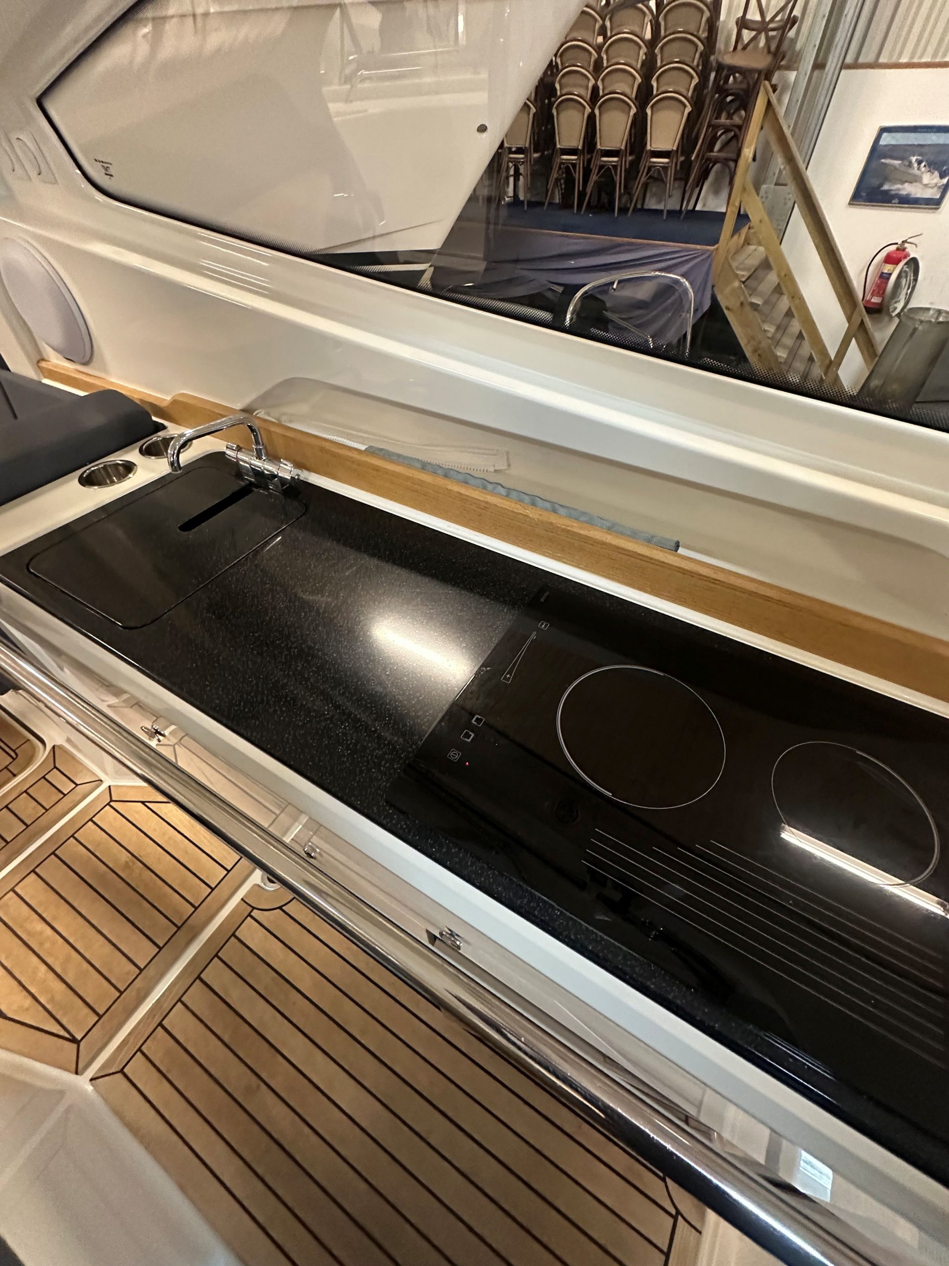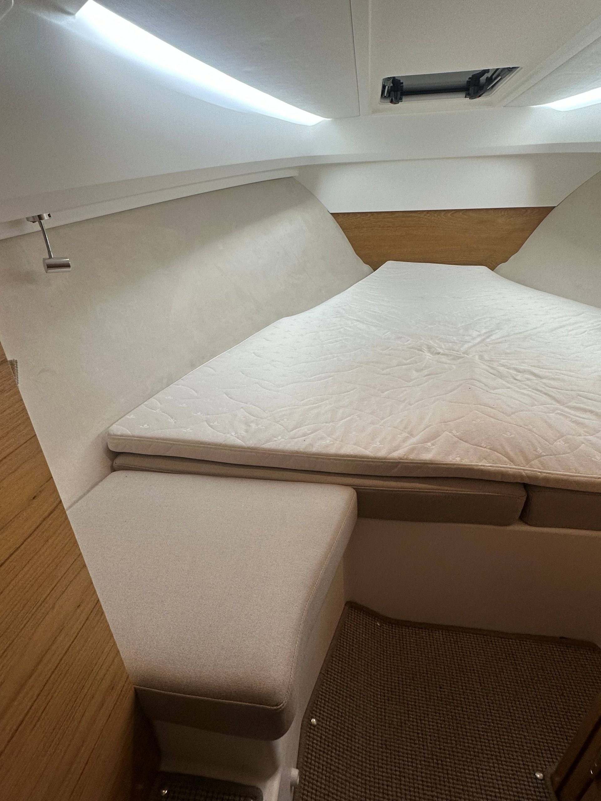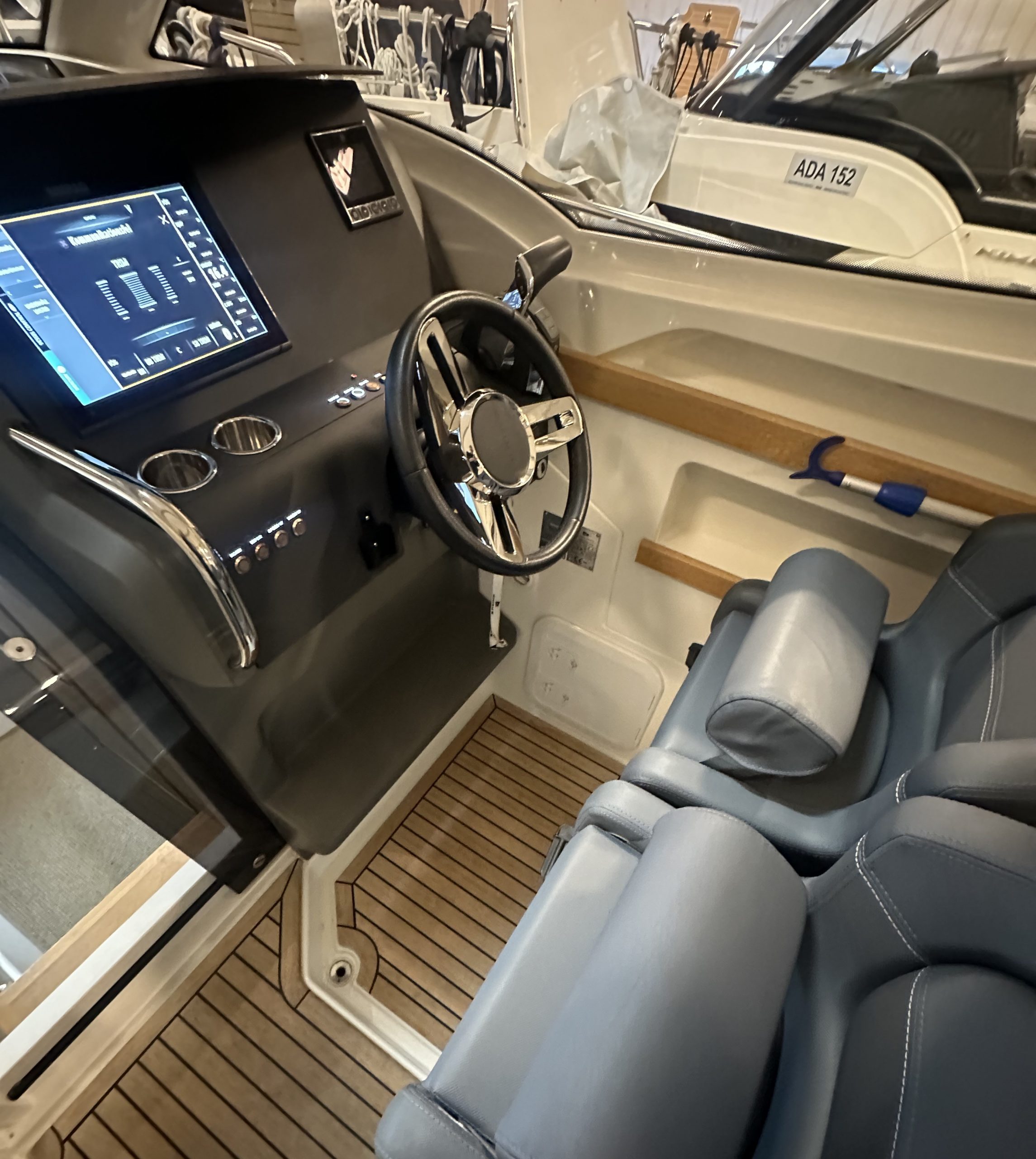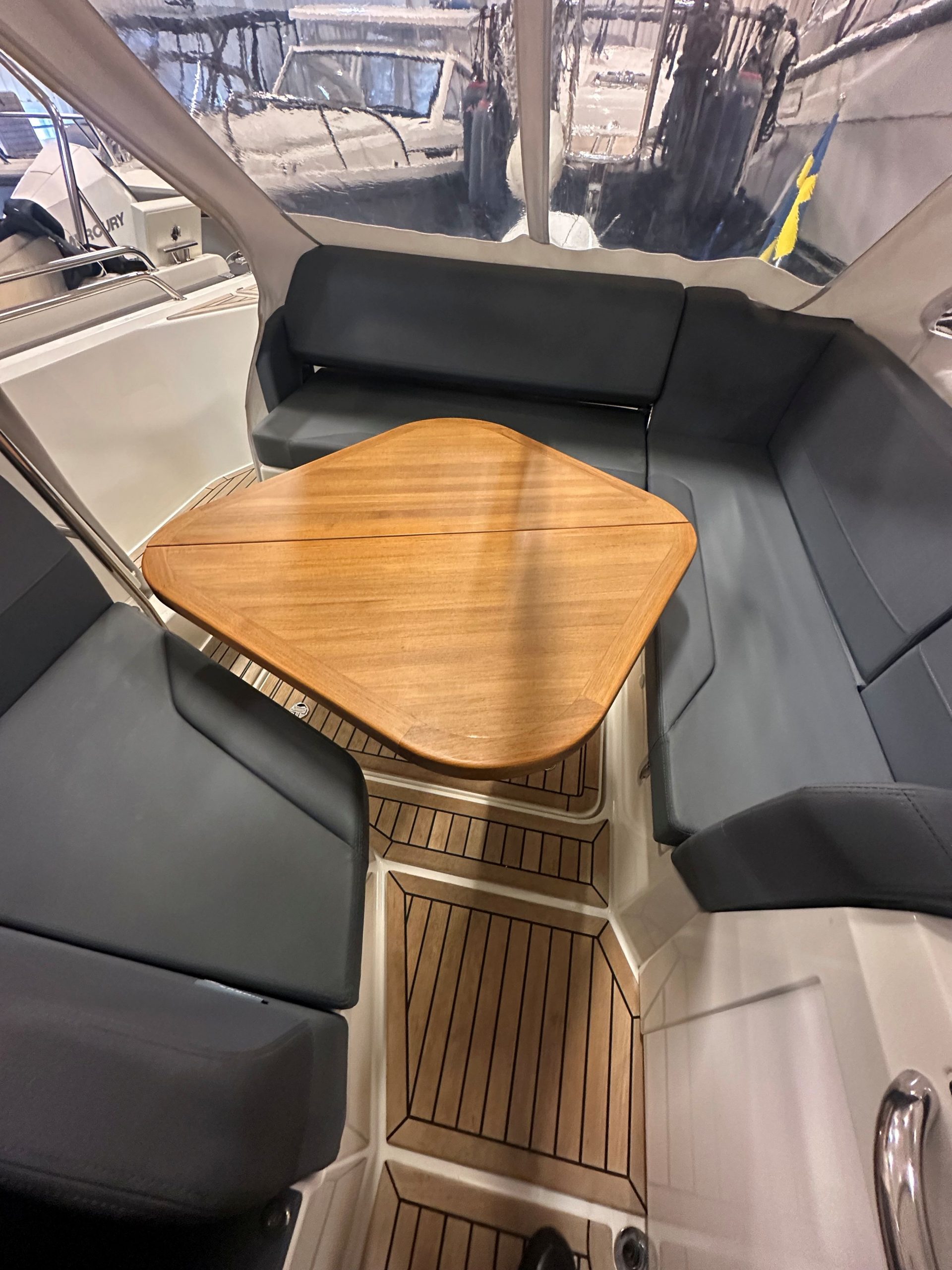 Standard Bogpropeller Sleipner SE40, Trimplan Zipwake 450, Corian skiva i pentry, Färskvattensystem, Servis 6p, Dusch akterdäck, Dynor Cockpit inkl prynadskuddar, Dynor förpik Beige, Plotter Simrad GO9, Matta i förpik, Leverans till Långedrag, Priser Sek inkl 25 % moms