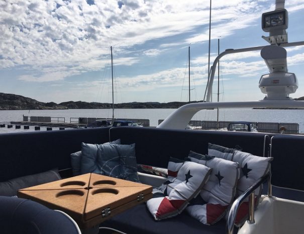 Stereo / CD, 2 högt i salong, två under flybridgetak och 2 på fly