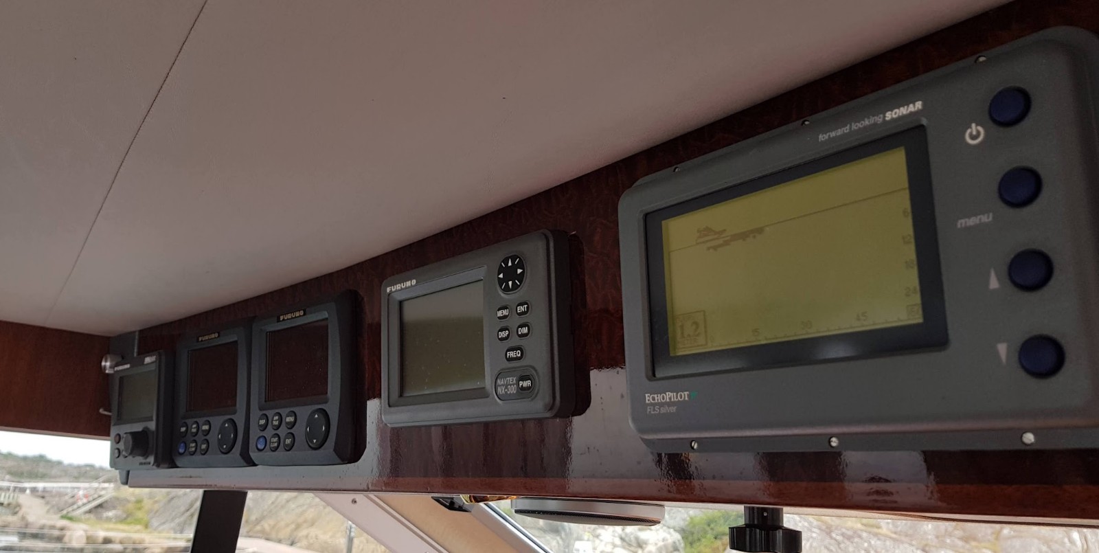 Väderstation furuno (2016) med dubbla displayer i styrplats samt fly.