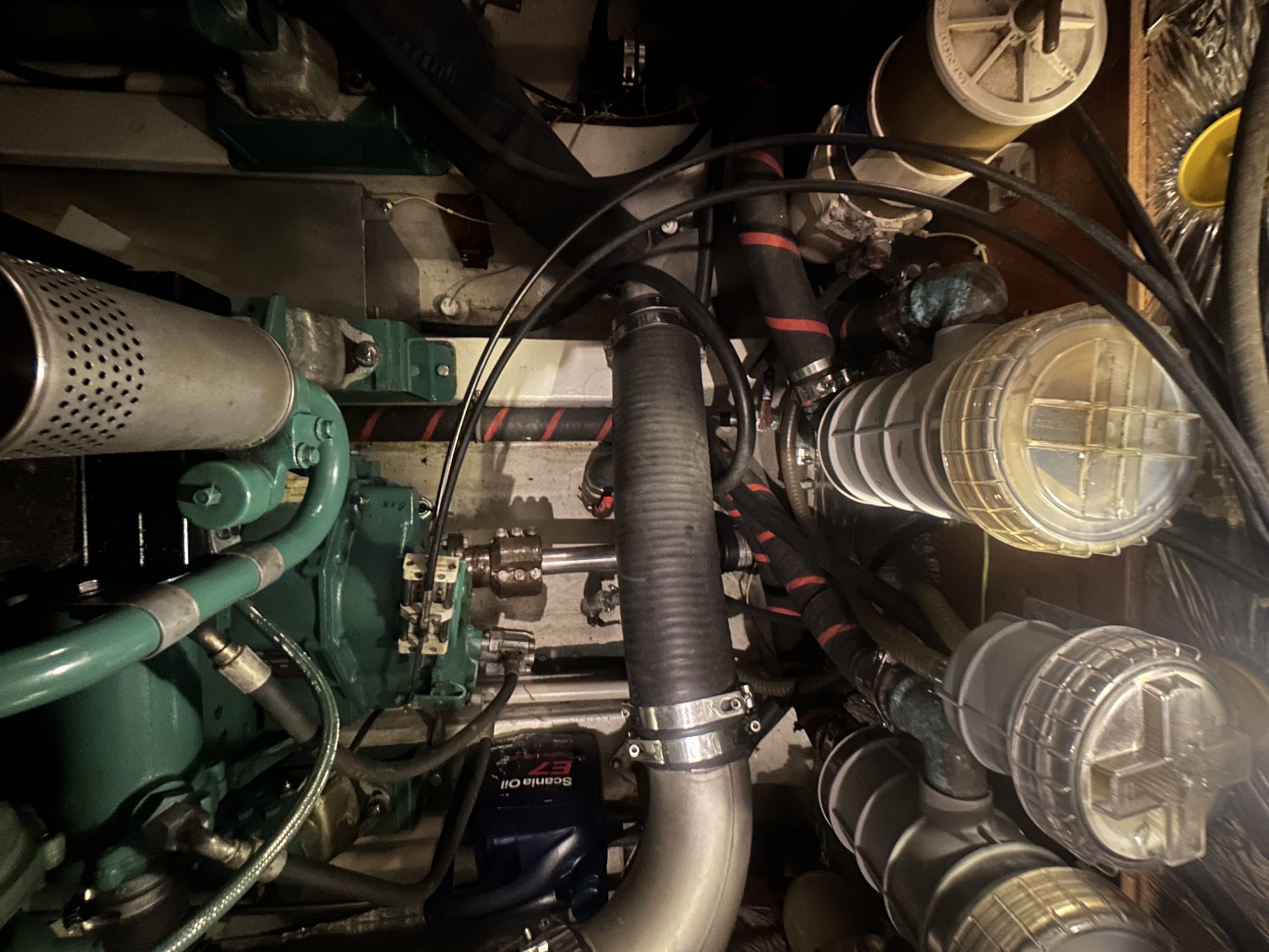 Bränsletankar: ca. 2 x 500 lit. – Vattentankar: 2 x 200 lit. Motorer: 2 x Volvo Penta TAMD 63P(2x 261 kW/ 355 ahk, motornummer 2061114049, 2061114048, diesel Gångtid: ca. 1435 timmar, Båten ligger i Skåne i varmhall