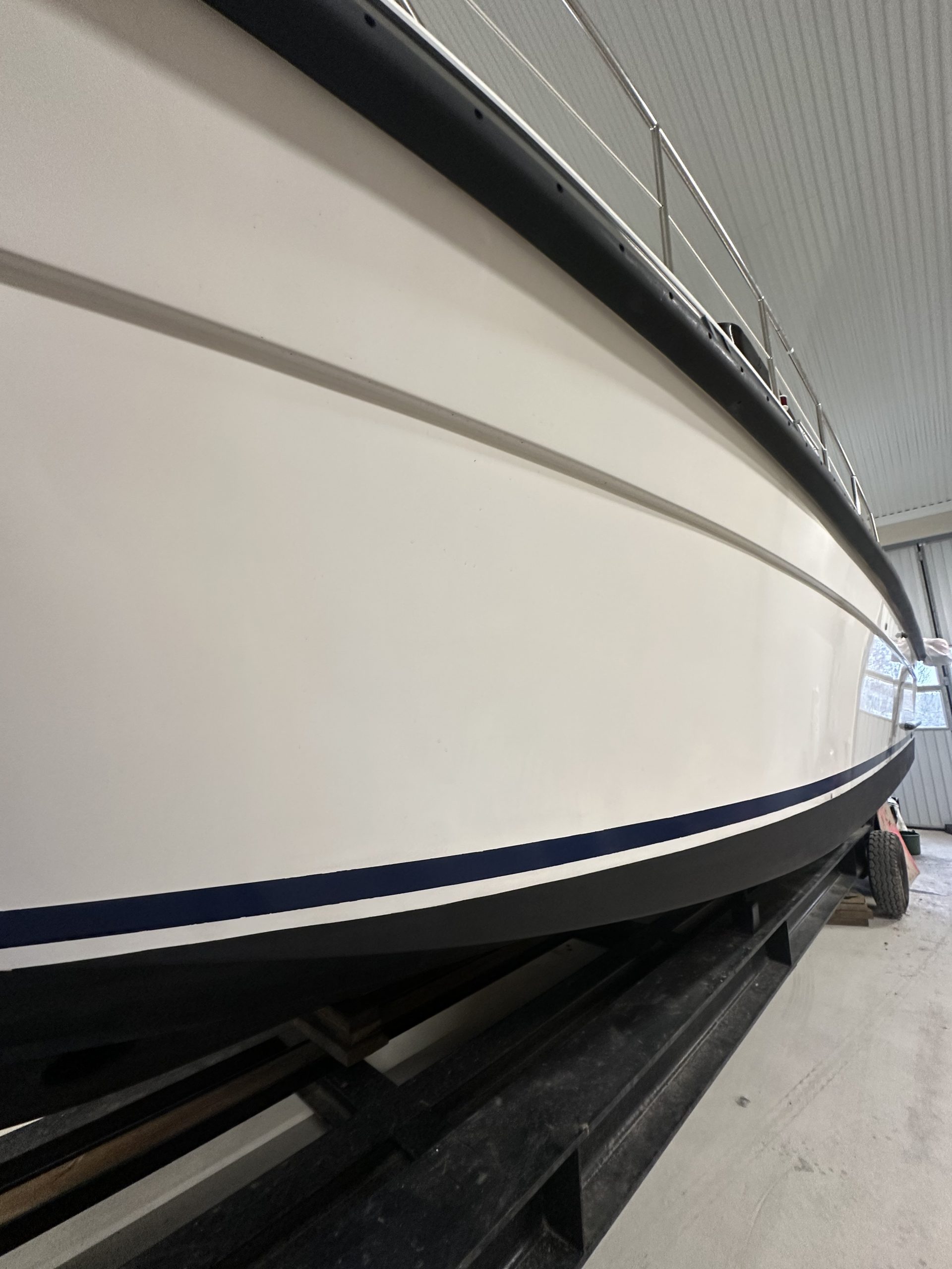 Tillv. nr: 3689 Levererad: 1996-08-14, L.ö.a: 11,43 m, Bredd: 3,77 m, Djupgång: ca. 1,0 m, Deplacement: ca. 9 ton