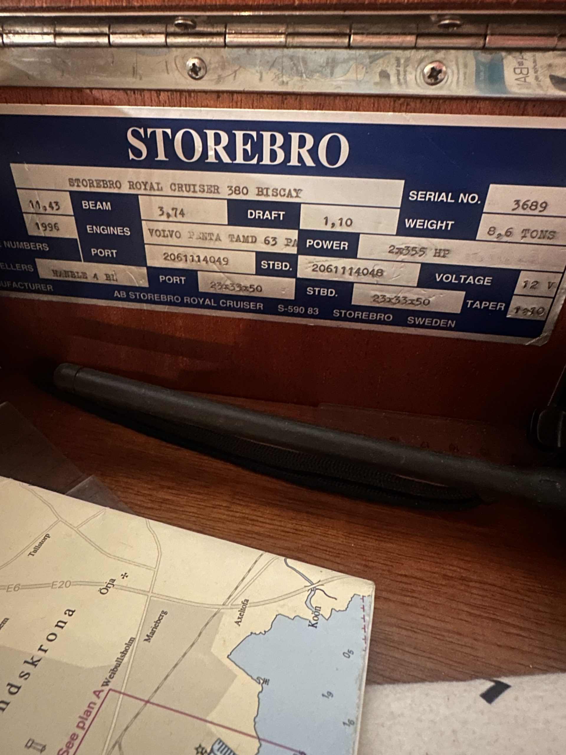 Nya mahognydekaler ”Storebro Royal Cruiser 380 Biscay”