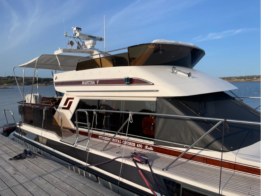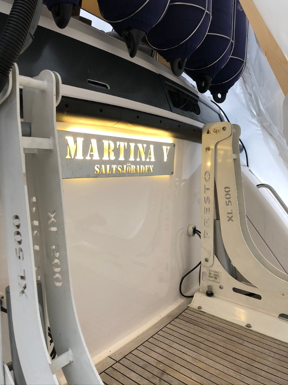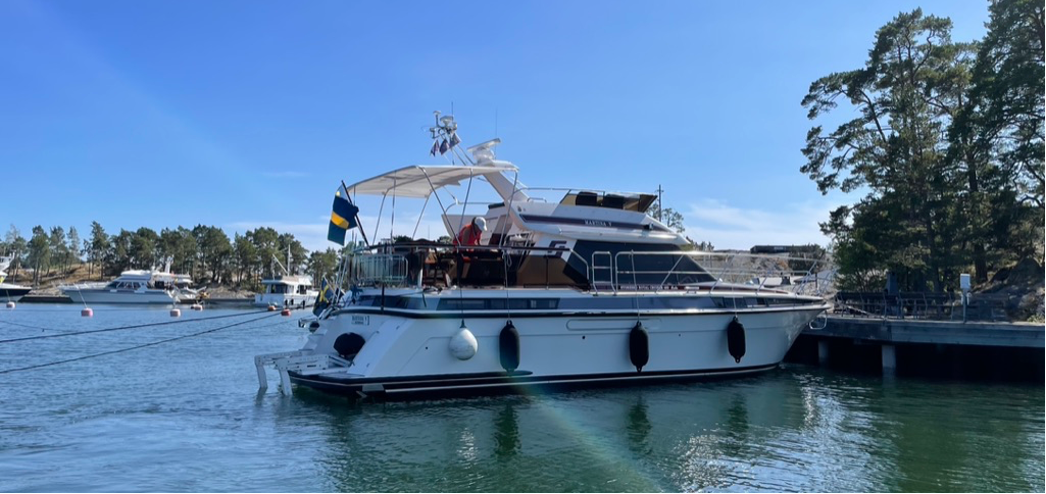 Båten på Vindö marin i deras varmhallar och lät dom sjösätta båten under 3 veckor då ägaren gjorde långa turer. Efter dessa tre veckor lyftes hon in i varmhallarna igen för full överhalning.