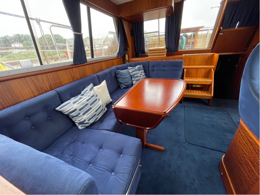 Fullt teakdäck i mycket gott skick, original tjocklek.