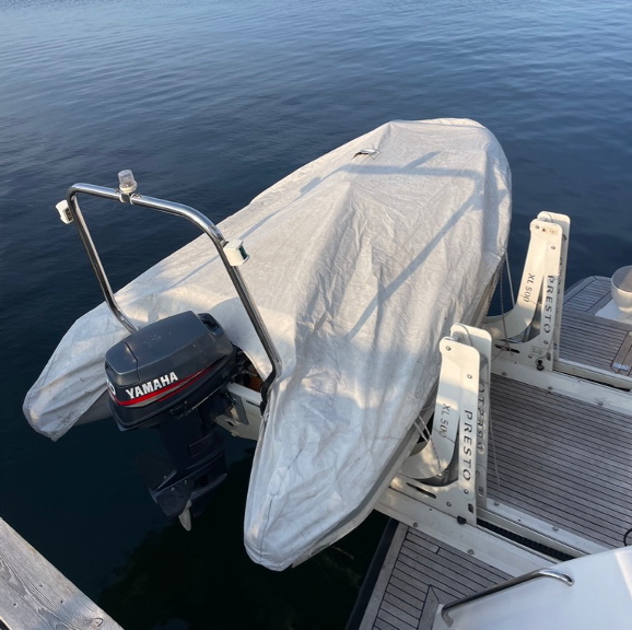 Två nyare flybridge kapell, ett större som fäster på måsvingen och ett mindre sportigare. Båda rullas enkelt ihop och förvaras under färd i ett fodral som sitter monterat på jagarskärmen.