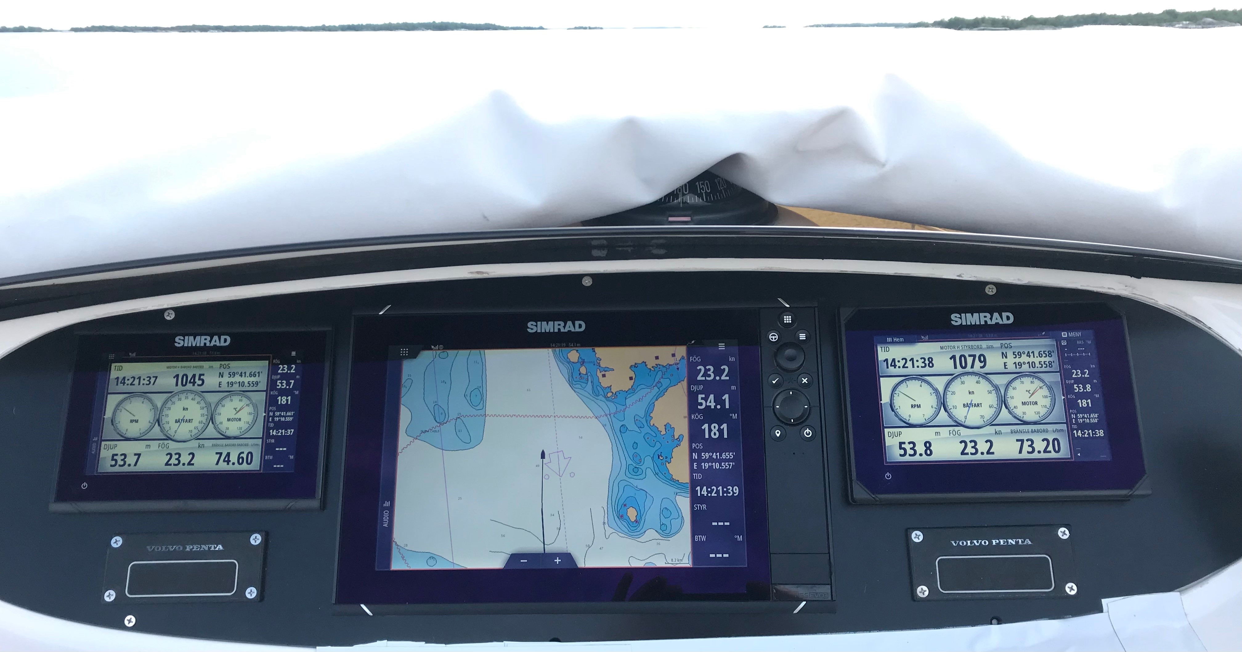 Nyare Simrad NSS Evo03 dolt monterad under kartbord.