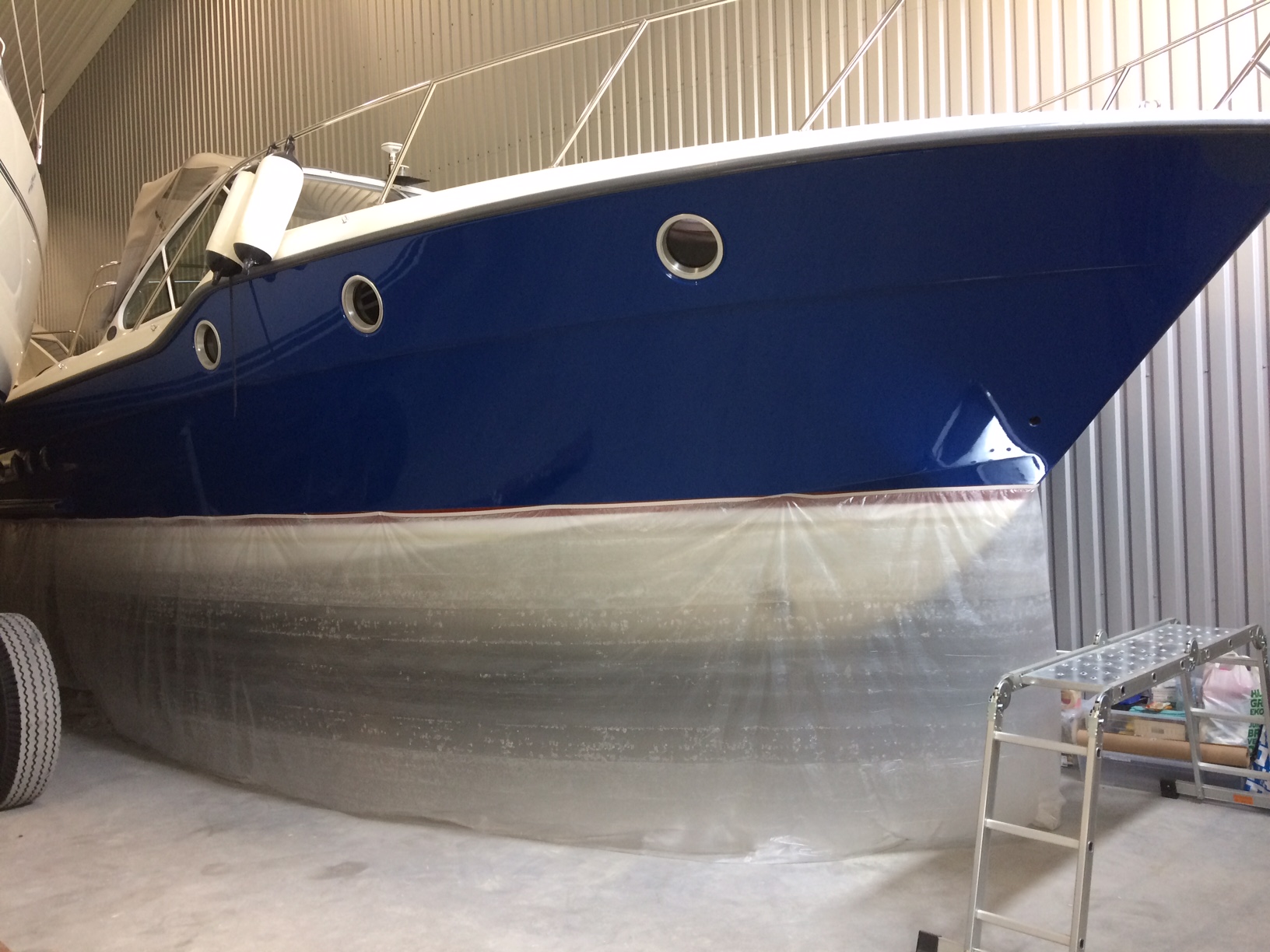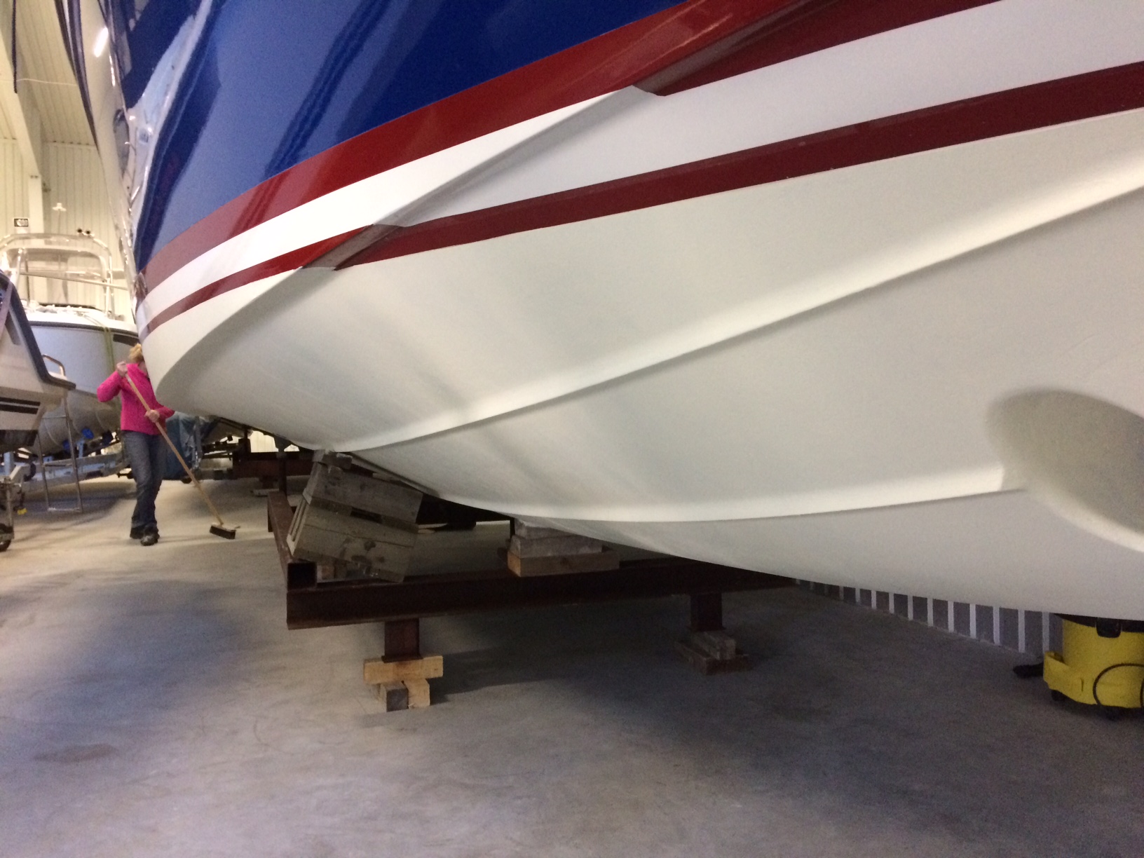 Botten nedslipad och genomgången av mindre defekter samt skrovet torkat.