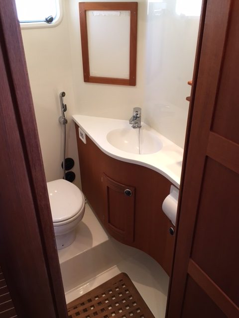 – Kantad beige matta i styrhytt (std i akter & förkabin)